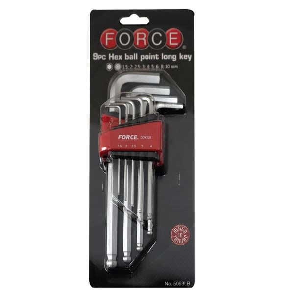 Juego de Llaves Allen (Hexagonales) Punta Bola Set de 9 Piezas en rango de 1/16″- 3/8″ Force 5093LBS
