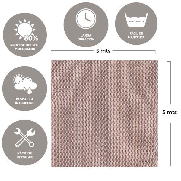 TOLDO VELA SOMBRA CUADRADA EN MEDIDAD DE 5X5 METROS COLOR CAFE BEIGE